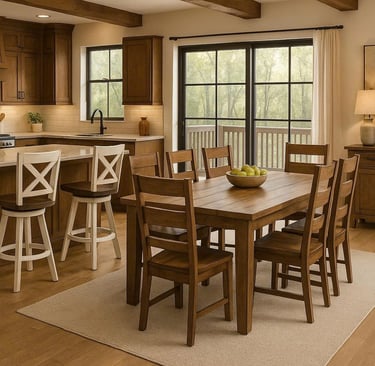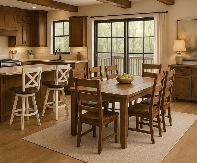 The Rustic Collection is ideal for creating cozy, grounded dining spaces with timeless appeal — where every knot in the wood tells a story, and every meal feels rooted in something real.